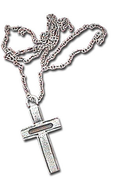 Cruz colgante con cadena e incrustaci?n de Tierra Santa.